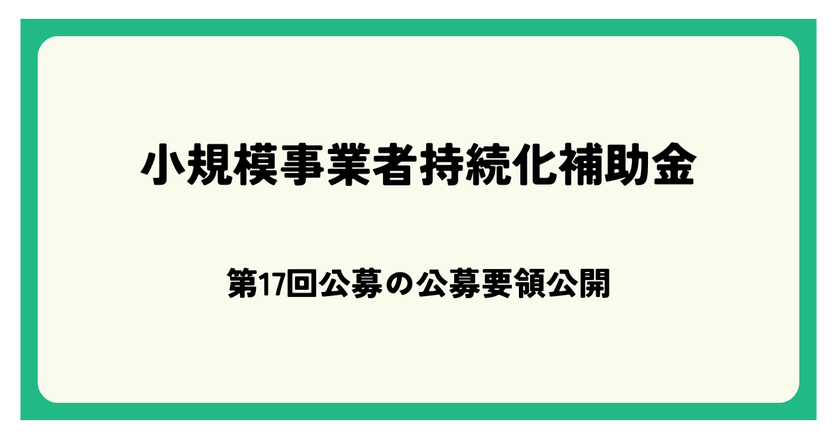 小規模事業者持続化補助金 第17回公募の公募要領公開