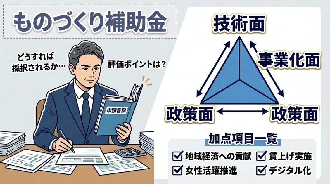 書類を出せば通るという時代ではありません。採択を左右するのは、審査員が何を見て点数をつけているか、そして加点をいくつ取れるかです。
