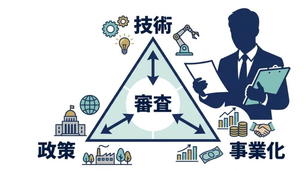 ものづくり補助金の審査は、外部有識者による書面審査で行われます。提出した事業計画書を複数の審査員が読み、技術面・事業化面・政策面の3軸で得点化します。得点の高い申請から順に採択されます。
