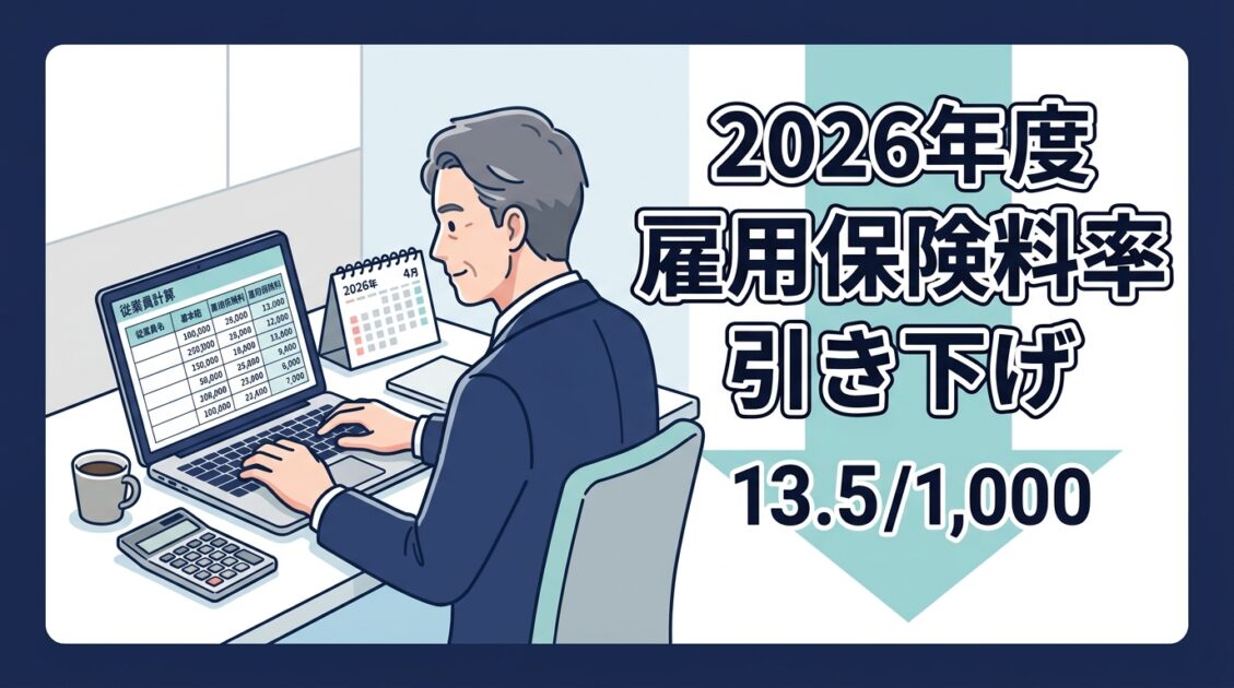 令和8年4月1日から、雇用保険料率が引き下げられます。一般の事業では労働者負担が1,000分の5、事業主負担と合わせた合計が1,000分の13.5となり、令和7年度より1.0ポイント低下します。給与計算を担当している方にとって、まず気になるのがいつの給与計算から新しい料率を使えばいいのかという点です。この記事では料率の変更内容と、給与計算への反映タイミングを実務に即して解説します。