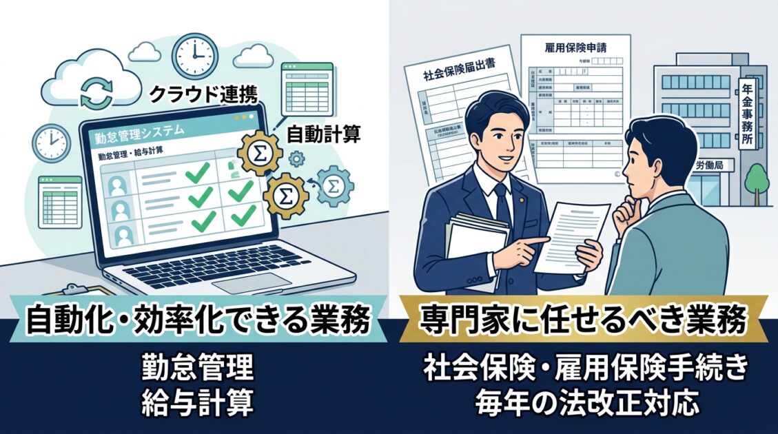 コアな経営判断は自社で行い、定型計算はシステム、法的手続きは専門家に任せる。このハイブリッド構造が、現代の中小企業における人事労務の最適解ではないでしょうか。