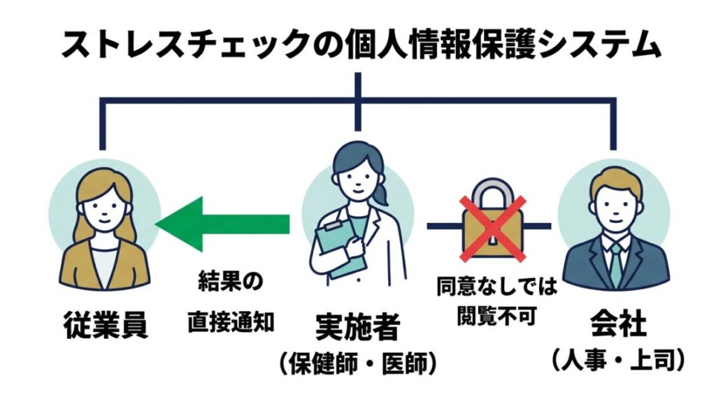 - 結果は実施者から本人に直接通知され、会社は同意なく見ることができないこと